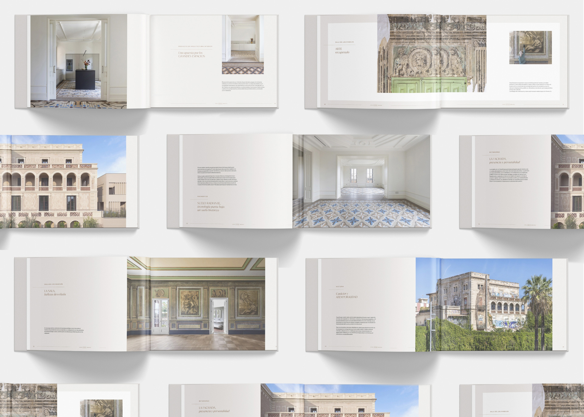 The result is a set of coherent, elegant, and timeless editorial and digital pieces that document the restoration of Casa Grases and communicate the care and precision behind the architectural project.